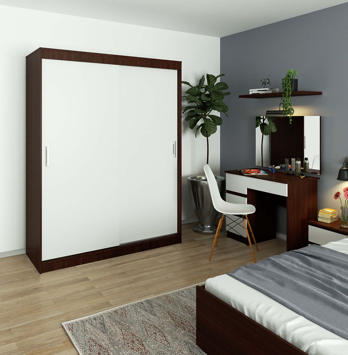 Banaby.de » Kindermöbel / Kinderkommoden und Schränke / Kinderkleiderschränke / SCHIEBETÜR-SCHRANK 150 cm CLP MONO WENGE/WEISS