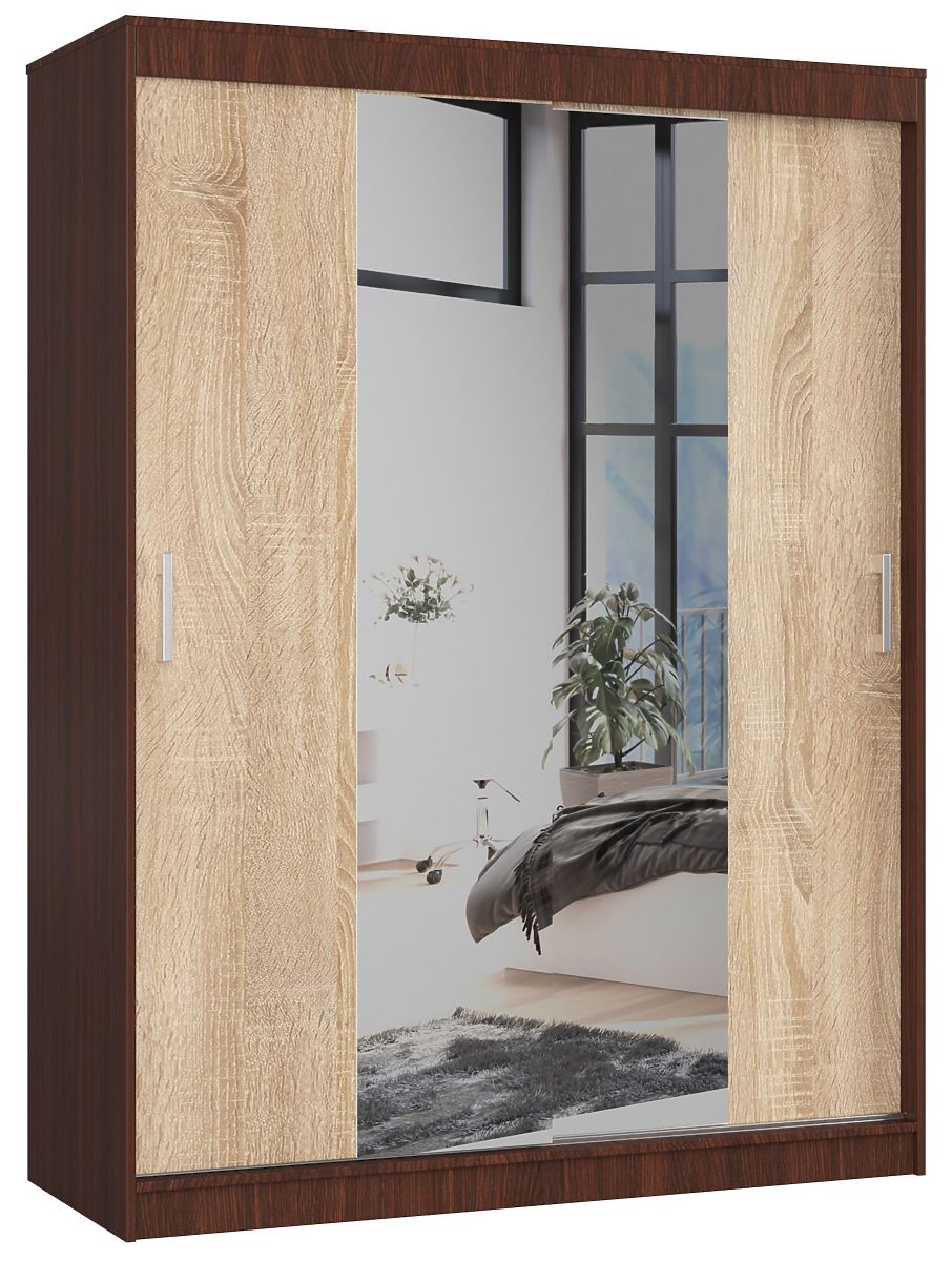 Schiebetürschrank 150 cm in Wenge/Sonoma mit Spiegel und viel Stauraum. .. mehr