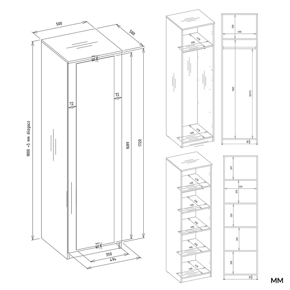 SCHRANK SD-50 SPIEGEL – SCHMALER SCHRANK MIT SPIEGEL AN DER FRONTSEITE