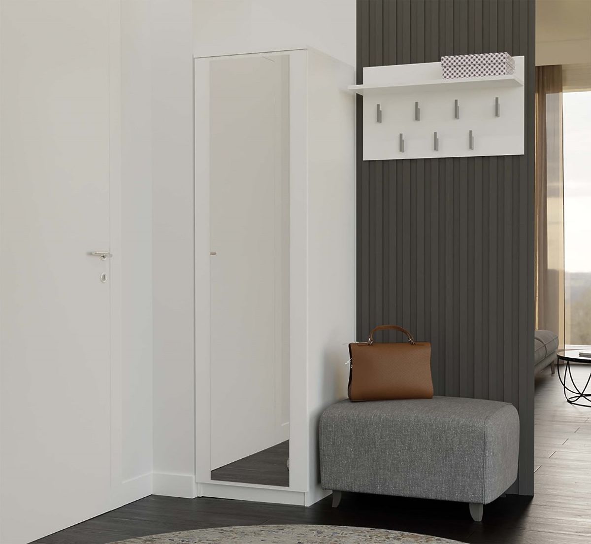 • Spiegel an der Frontseite – schmaler Schrank mit vollwertigem Spiegel ist die ideale Lösung für kleine Räume