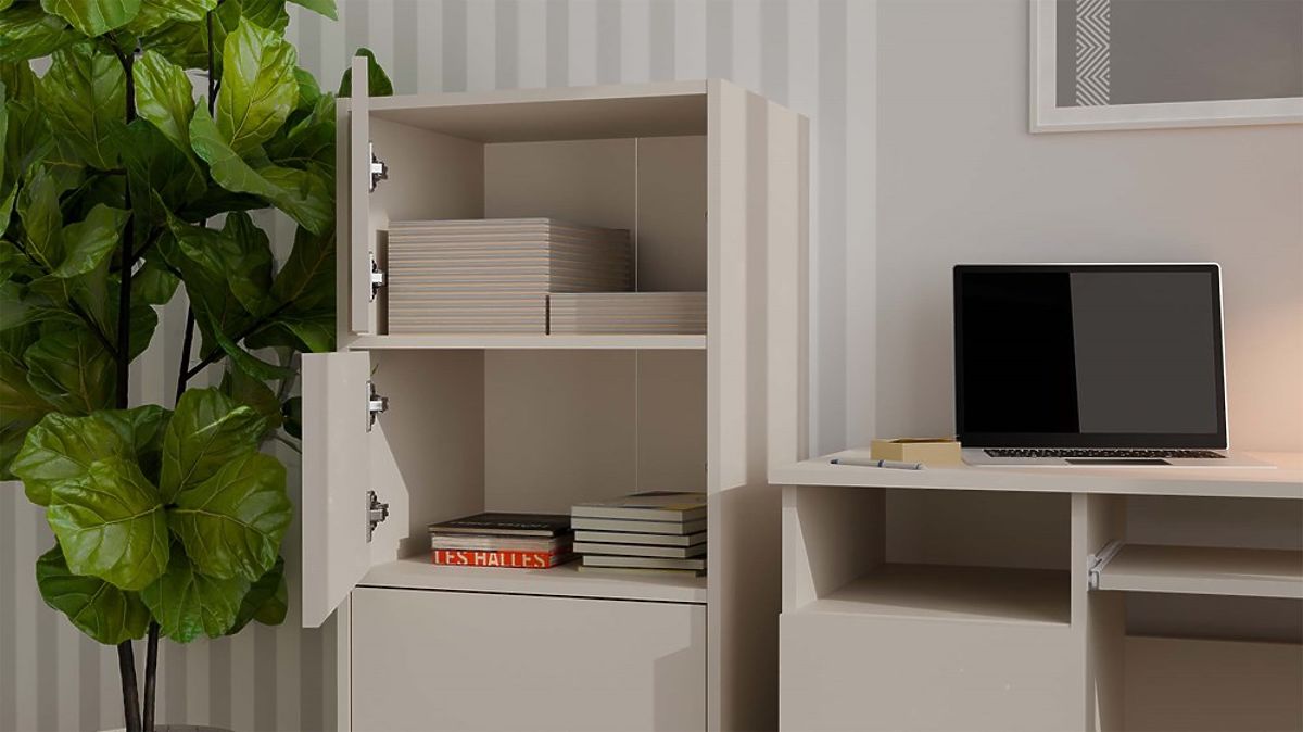 Dank der geräumigen Regale hinter den glatten Türen bietet die Kommode viel Stauraum und erleichtert die Ordnung in jedem Raum.