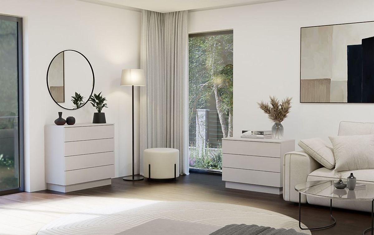 Moderne Kommode AMBER 3S mit 3 Schubladen in Kaschmir Beige. .. mehr