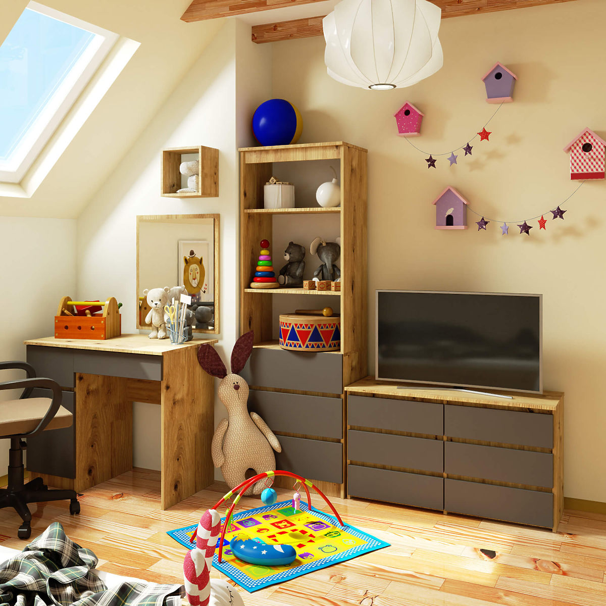 Banaby.de » Kindermöbel / Kinderkommoden und Schränke / Kinderkommoden / KOMMODE CL100 6SZ PK EICHE ARTISAN / GRAU