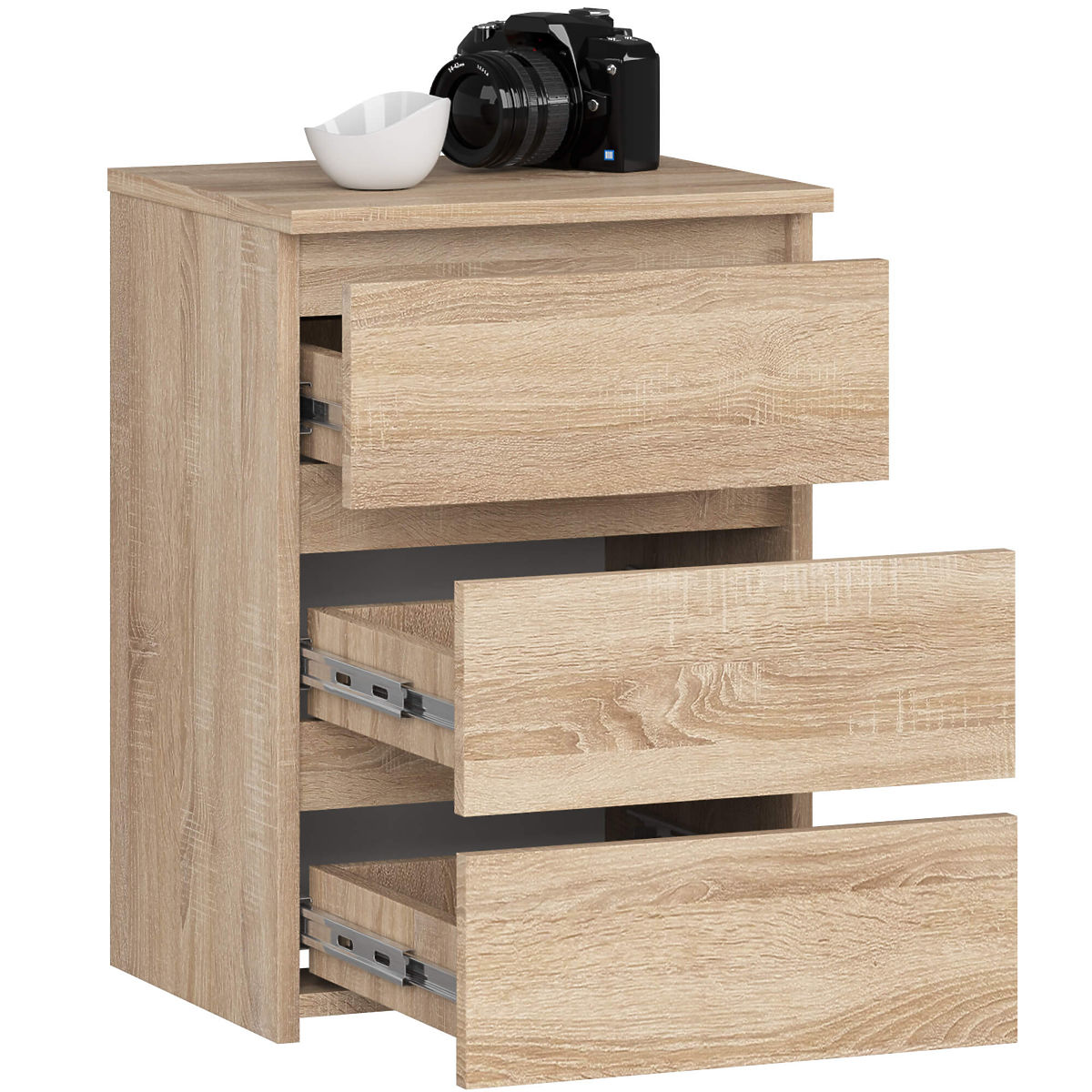 Nachttische sind eine beliebte Art von Möbeln, die neben dem Bett platziert werden. Auf ihrer Oberfläche befindet sich oft eine Lampe, während im Inneren Gegenstände aufbewahrt werden, die Entspannung und Schlaf erleichtern. Personen, die eine elegante Kommode suchen, sollten auf den Nachttisch CL3 40 cm in der Farbe Eiche Sonoma achten. Er wird in jedem Schlafzimmer schön zur Geltung kommen. Sie können ihn auch im Kinderzimmer platzieren.