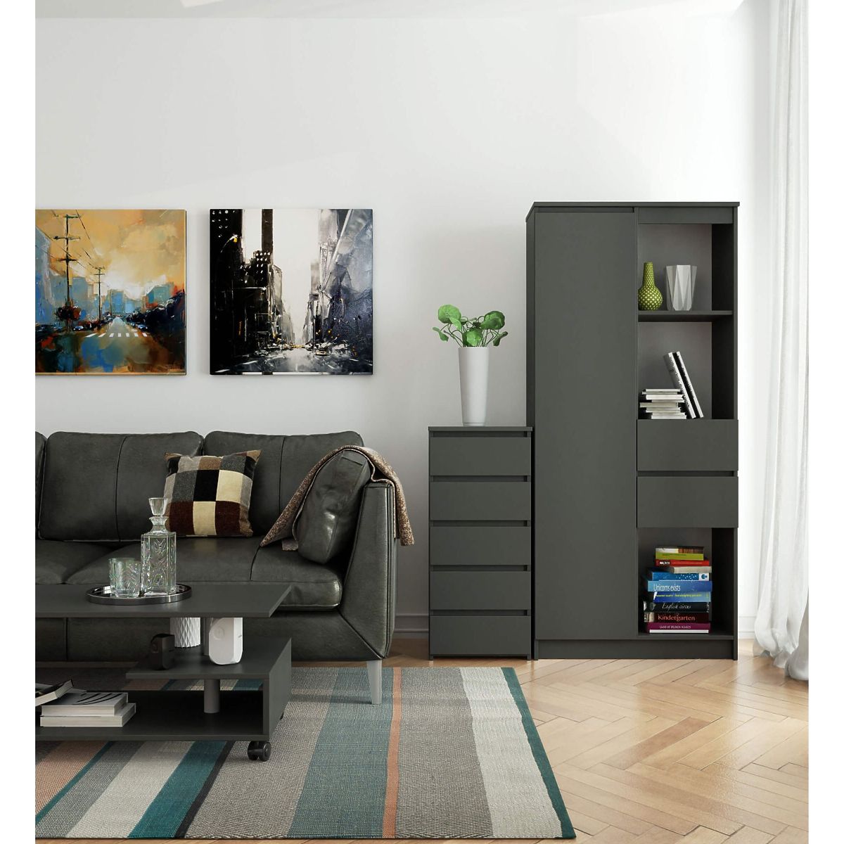 - Elegantes Aussehen - die Kommode ist einfach in der Form und zeichnet sich durch die stilvolle Farbe Graphit Grau aus,