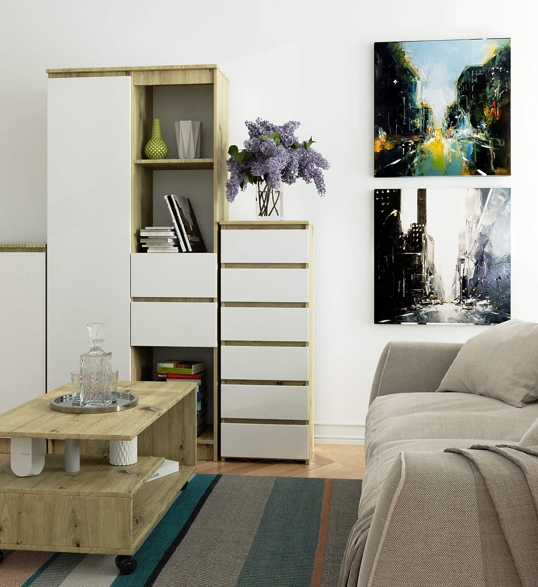 - Elegantes Aussehen - die Kommode ist einfach in der Form und zeichnet sich durch die stilvolle Farbe Eiche Artisan aus,