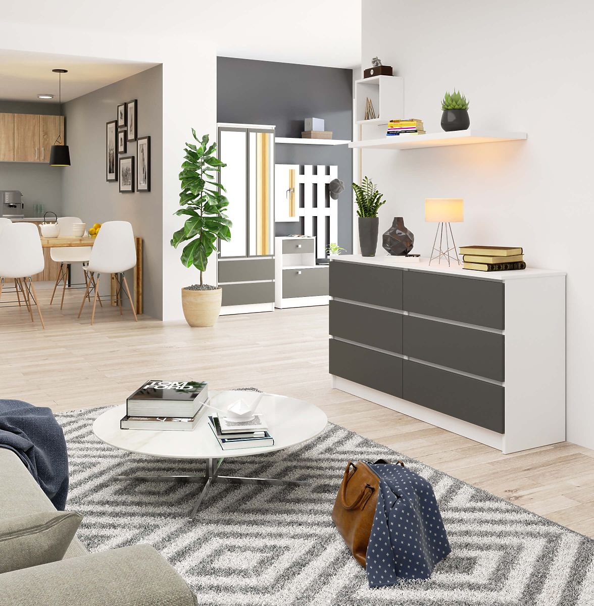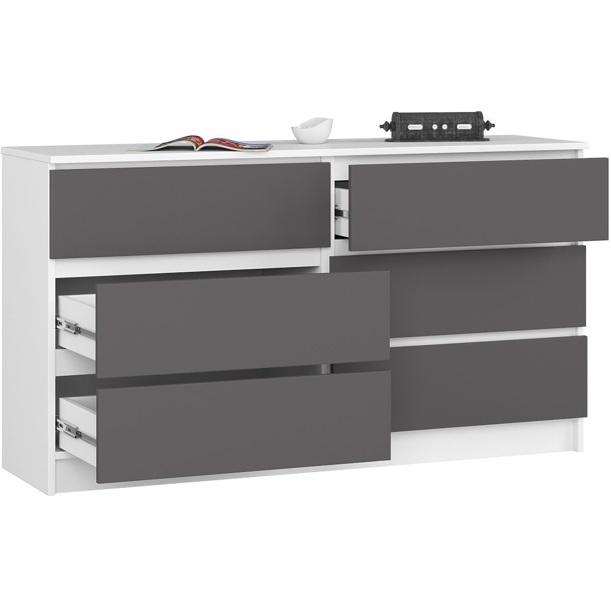 Kommode mit 6 Schubladen, weiß-grafitgrau, zur Selbstmontage. .. mehr