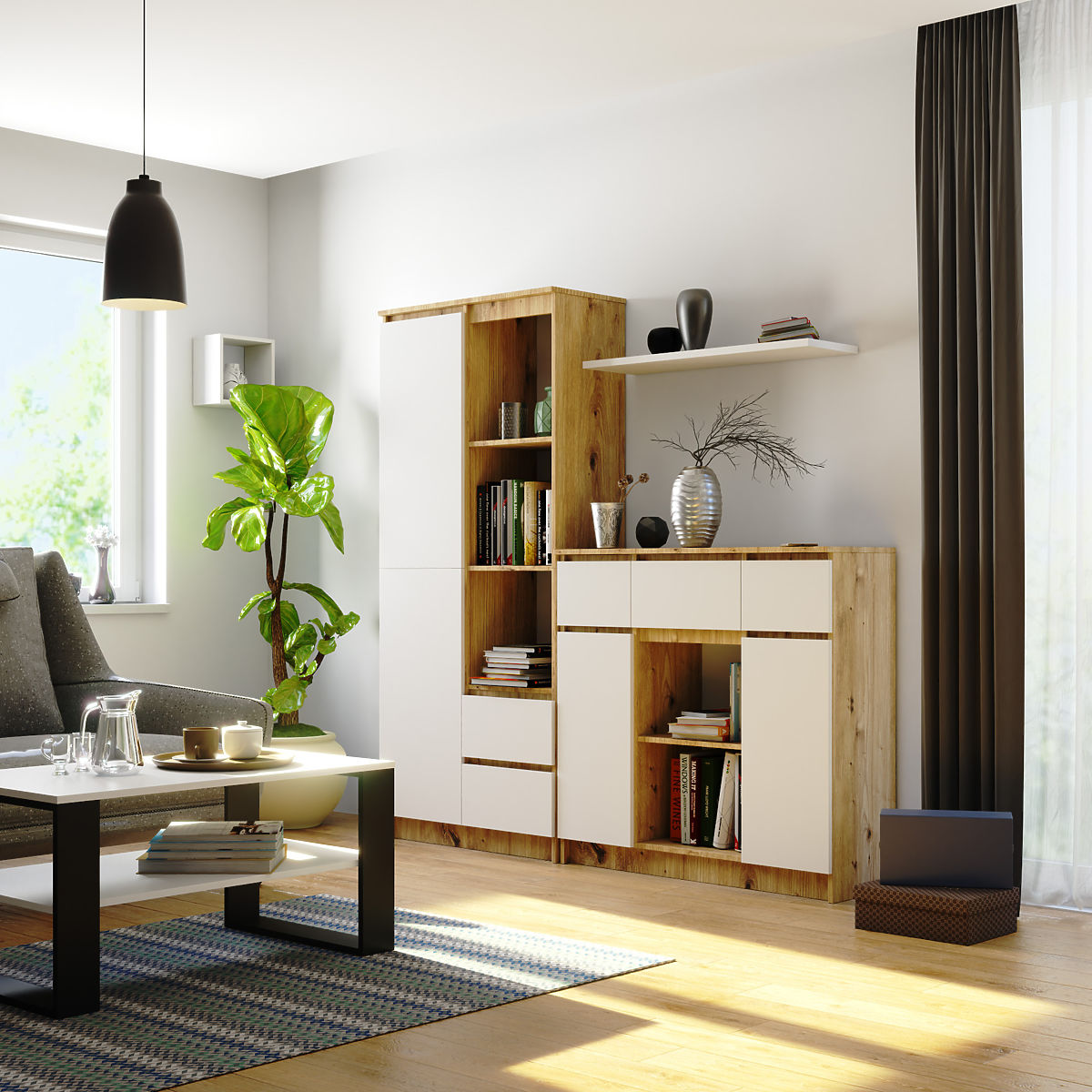 Banaby.de » Kindermöbel / Kinderkommoden und Schränke / Kinderkommoden / KOMMODE K100 2D 3SZ 1P PK EICHE ARTISAN / WEISS