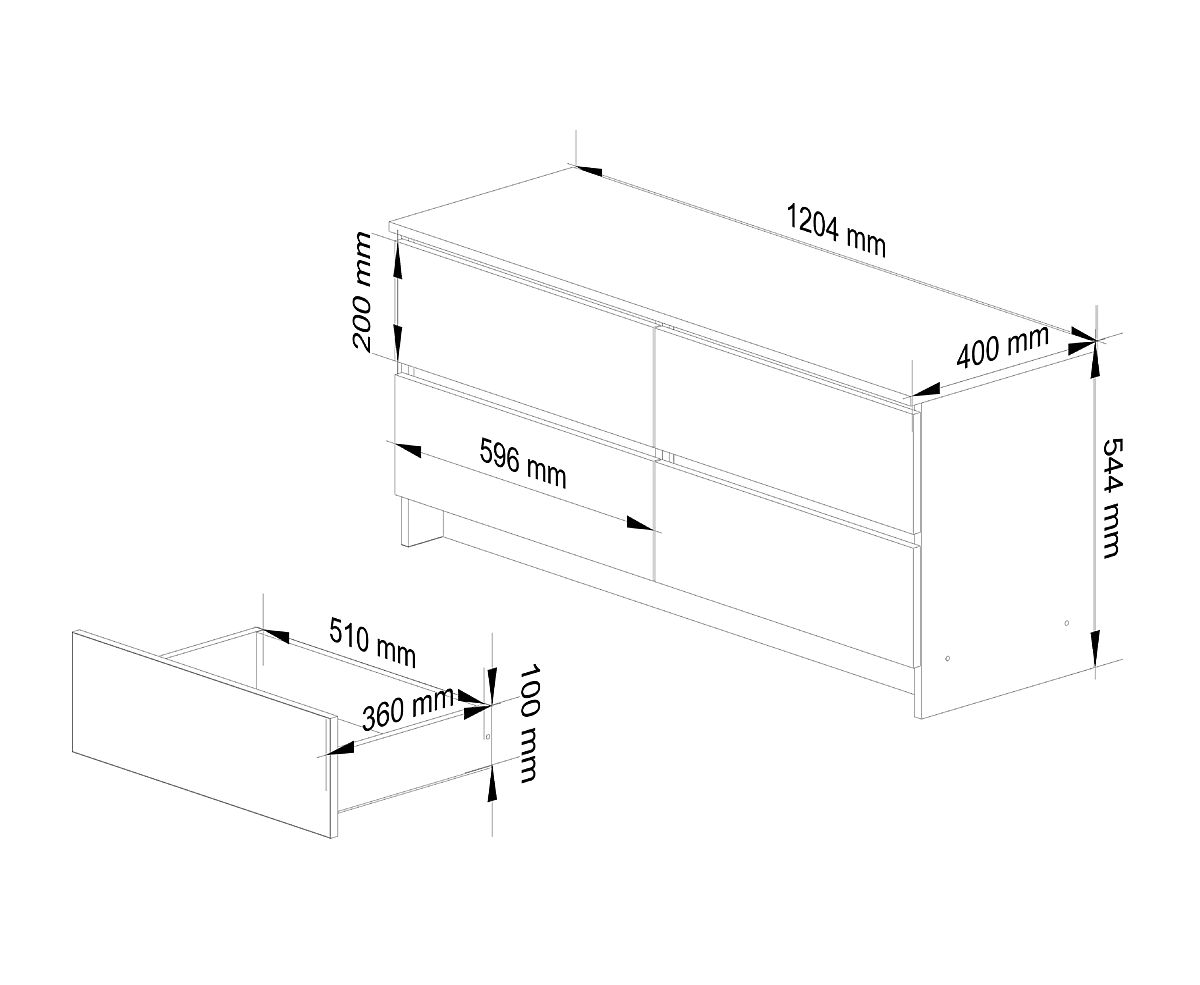 Banaby.de » Kindermöbel / Kinderkommoden und Schränke / Kinderkommoden / KOMMODE K120 4SZ CLP PK EICHE ARTISAN