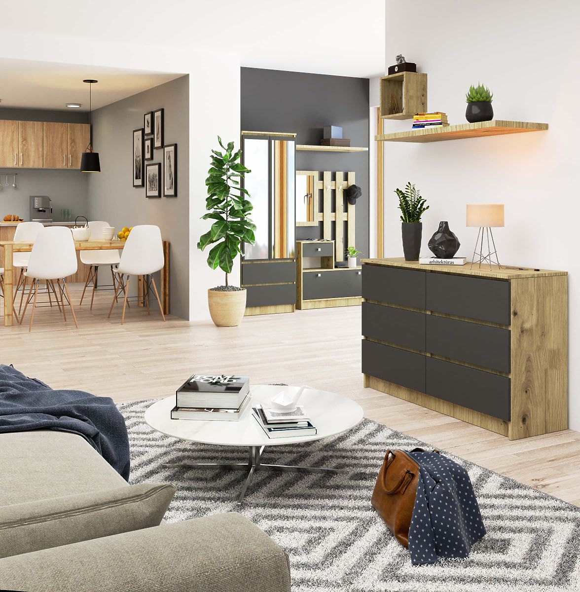 Banaby.de » Kindermöbel / Kinderkommoden und Schränke / Kinderkommoden / KOMMODE K120 6SZ CLP EICHE ARTISAN / GRAU