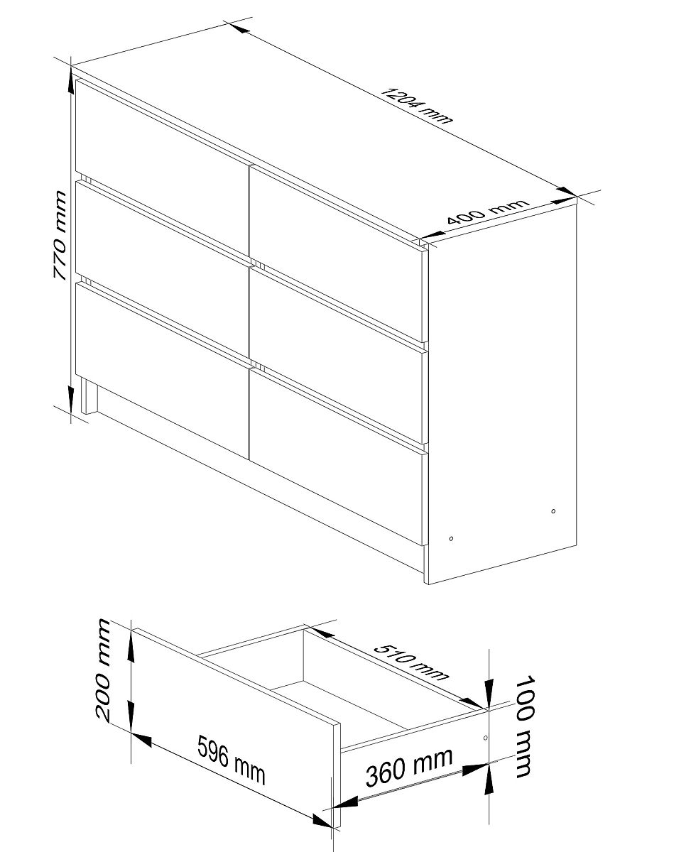 KOMMODE K120 MIT 6 SCHUBLADEN