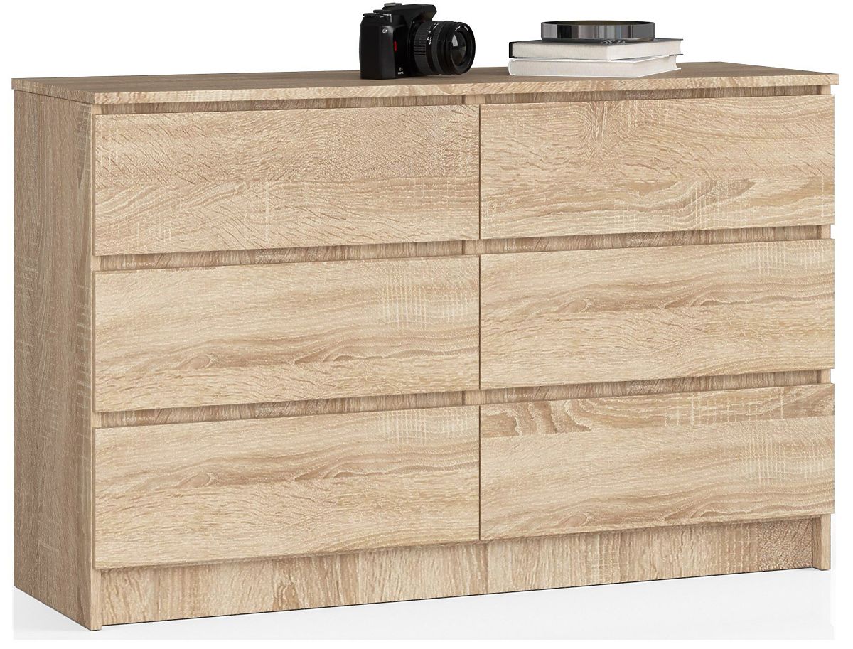 Wenn Sie ein besonders geräumiges, aber elegantes Möbelstück suchen, ist die Kommode K120 aus unserem Angebot eine hervorragende Lösung! Hergestellt aus hochwertiger laminierter Platte und ausgestattet mit bis zu 6 Schubladen, ist die Kommode die ideale Wahl für Schlafzimmer, Wohnzimmer, Flur oder Büro. Ihr elegantes Aussehen verdankt sie nicht nur der geschmackvollen und funktionalen Konstruktion, sondern auch der modischen Farbe Eiche Sonoma.
