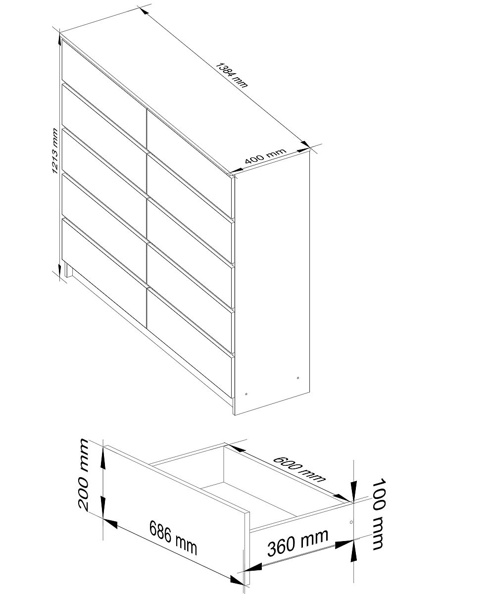 Banaby.de » Kindermöbel / Kinderkommoden und Schränke / Kinderkommoden / KOMMODE K140 10SZ CLP PK EICHE SONOMA