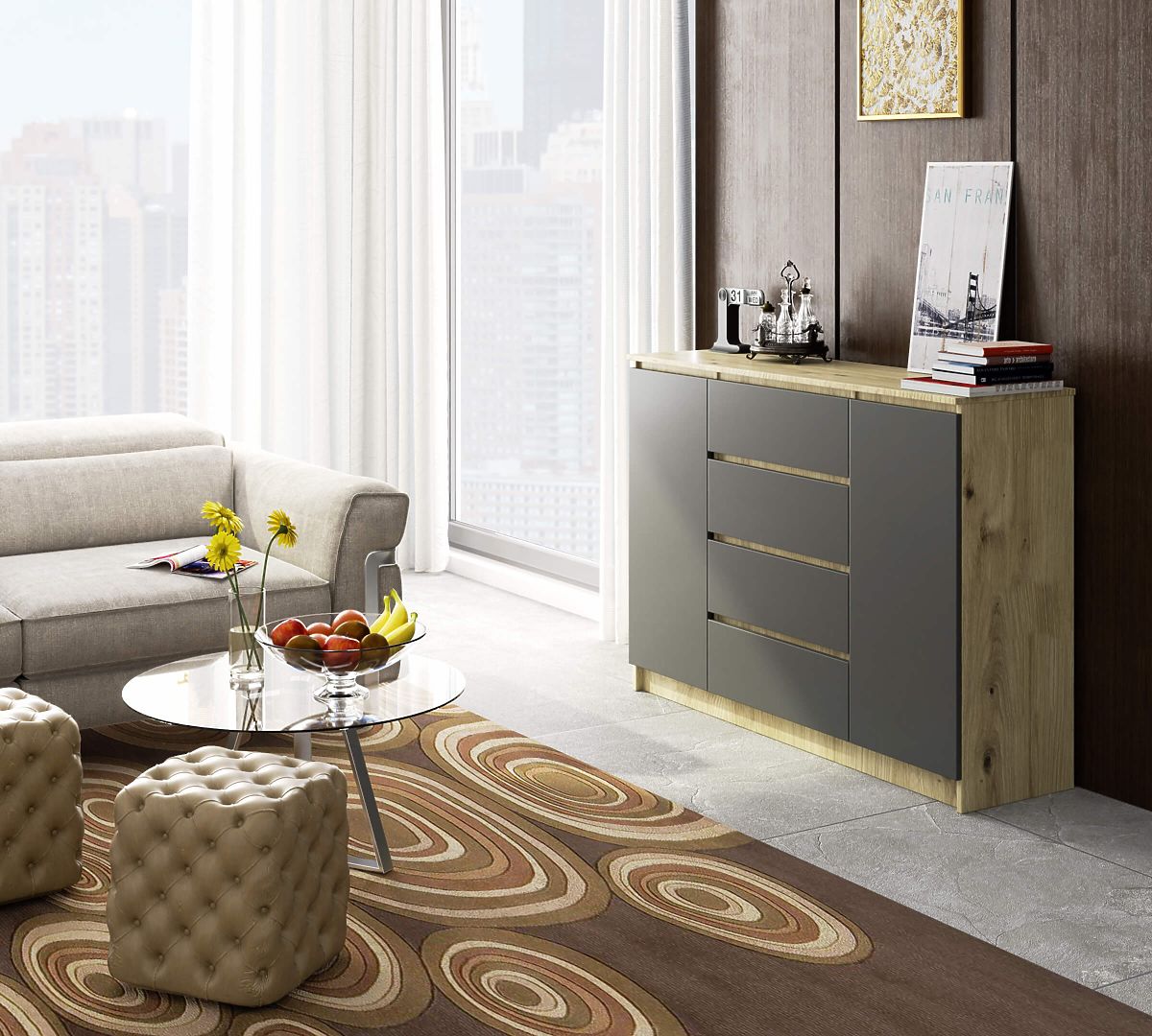KOMMODE K140 2 TÜREN 4 SCHUBLADEN