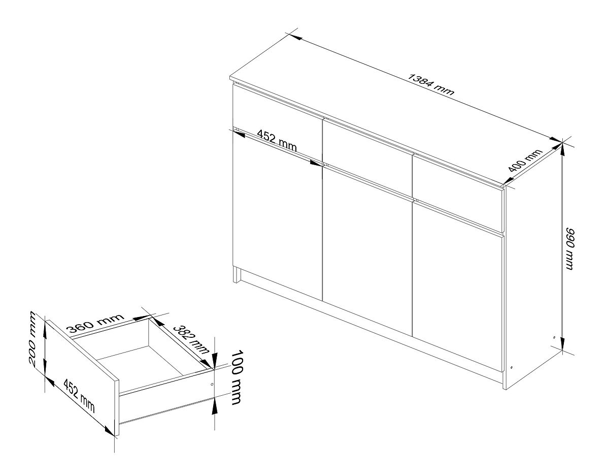 Banaby.de » Kindermöbel / Kinderkommoden und Schränke / Kinderkommoden / KOMMODE K140 3D 3SZ CLP PK WEISS HOCHGLANZ