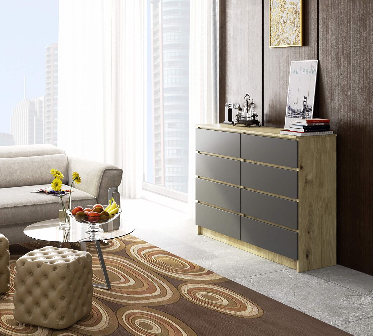 KOMMODE K140 8SZ CLP EICHE ARTISAN / GRAU