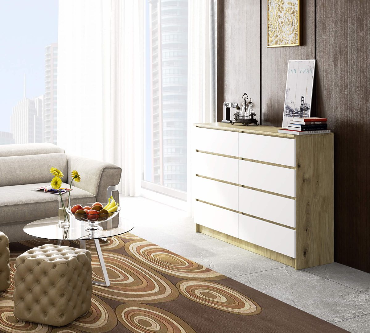 Banaby.de » Kindermöbel / Kinderkommoden und Schränke / Kinderkommoden / KOMMODE K140 8SZ CLP EICHE ARTISAN / WEISS