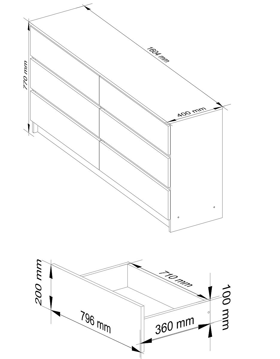 Die moderne Kommode K 160 cm ist ein Produkt, das hohe ästhetische Verarbeitung und Funktionalität vereint. Das Möbelstück besteht aus sechs geräumigen Schubladen, wodurch es im Wohnzimmer, Kinderzimmer, Büro, Esszimmer sowie in vielen anderen Räumen Verwendung findet, um zahlreiche Gegenstände zu verstauen. Die Kommode in der interessanten Farbgebung (Eiche Artisan) passt sehr gut in Innenräume, die im industriellen, modernen, skandinavischen oder Loft-Stil gestaltet sind, und spricht auch Liebhaber der Retro-Atmosphäre an. Es ist ein interessantes Angebot, zu dem weitere Kommoden, Schränke, Regale und Schreibtische im gleichen Stil angepasst werden können. Die minimalistische Form verbunden mit hoher Qualität wird sicherlich viele Kunden ansprechen.
