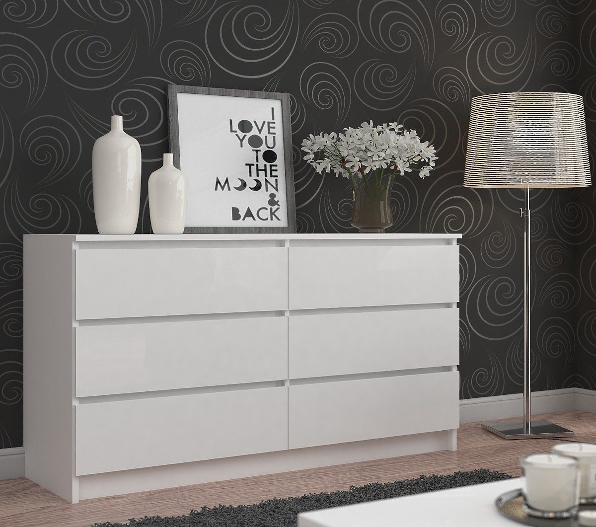 Diese klassisch schöne Kommode in Weiß ist eines der vielen interessanten Angebote unseres Online-Shops. Das Möbelstück besteht aus sechs geräumigen Schubladen, die problemlos alle notwendigen Gegenstände im jeweiligen Raum aufnehmen können. Die Kommode passt hervorragend ins Wohnzimmer, aber auch ins Kinder- oder Jugendzimmer. Sie kann auch im Schlafzimmer, Gästezimmer, Esszimmer, Flur sowie in Räumen mit nichtwohnlichem Charakter - wie Hotels oder Büros - verwendet werden.