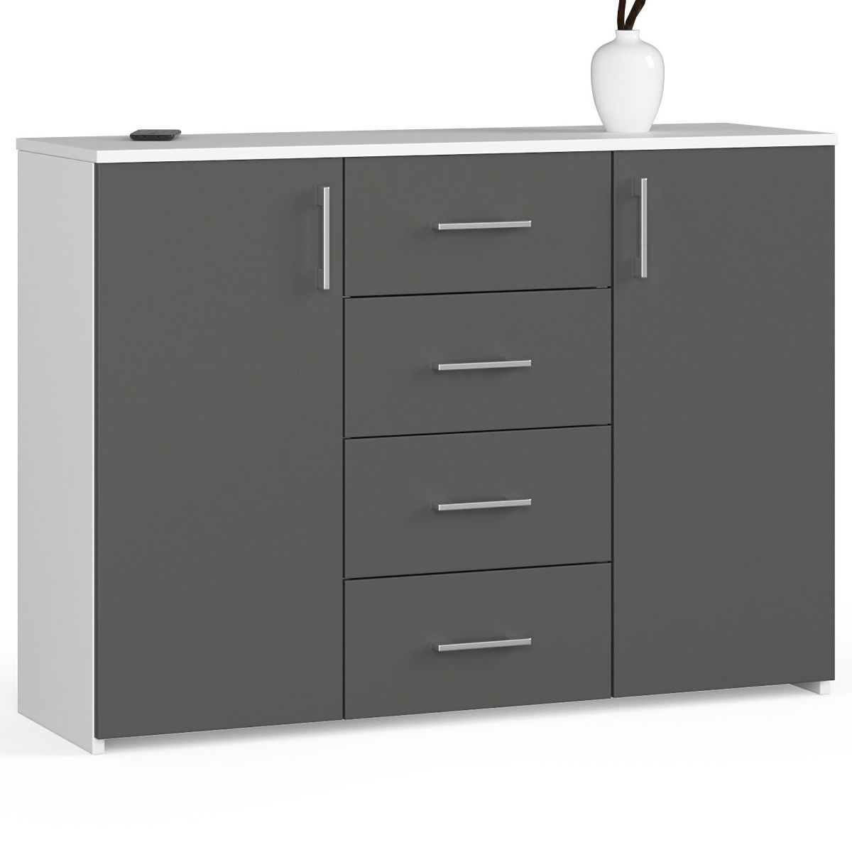 Große, geräumige Kommode in Weiß und Graphitgrau mit viel Stauraum. .. mehr