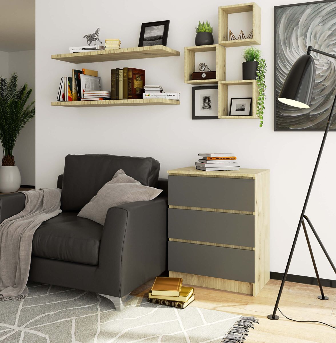 Banaby.de » Kindermöbel / Kinderkommoden und Schränke / Kinderkommoden / KOMMODE K60 3SZ CLP PK EICHE ARTISAN / GRAU