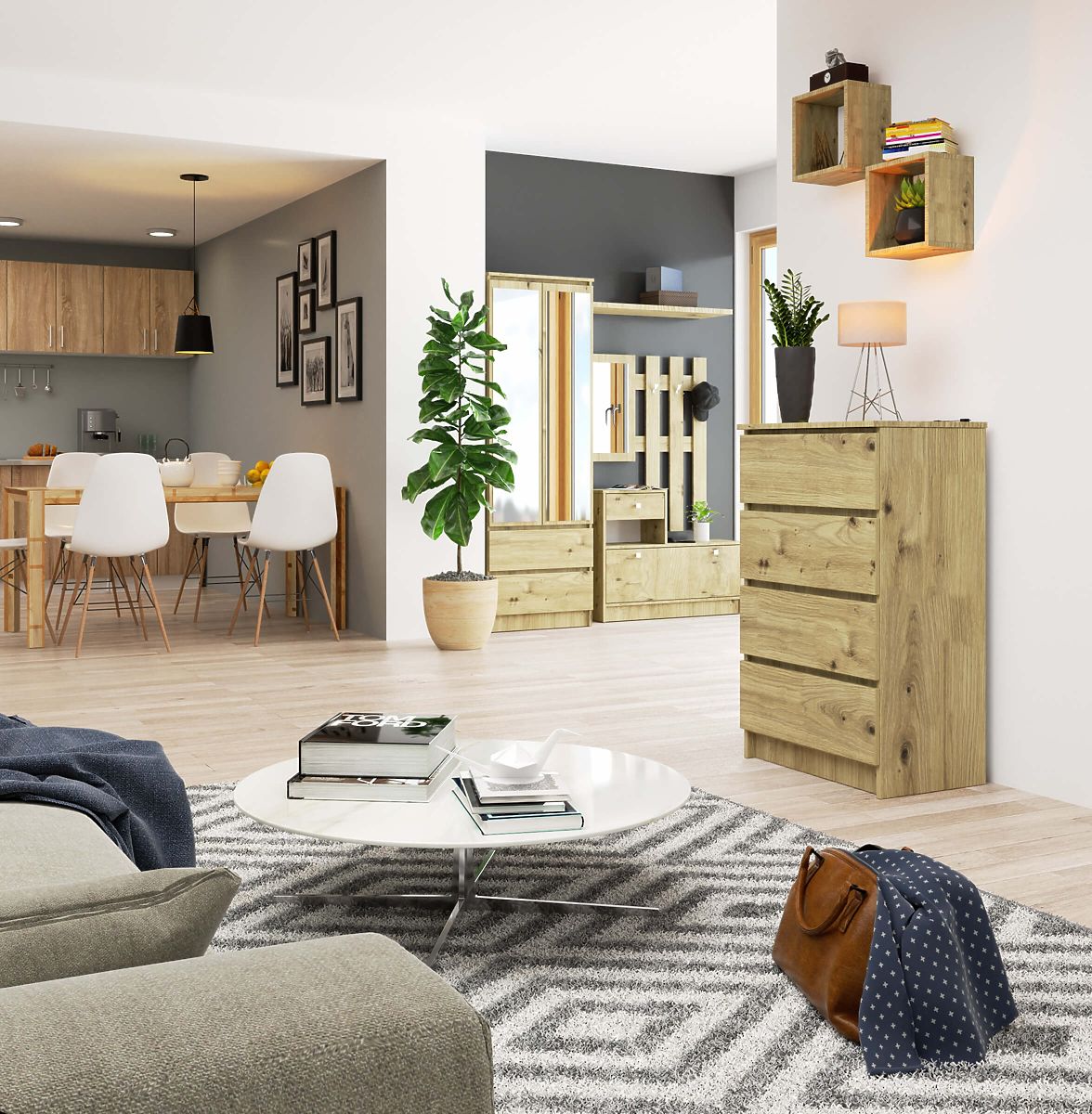 Banaby.de » Kindermöbel / Kinderkommoden und Schränke / Kinderkommoden / KOMMODE K60 4SZ PK EICHE ARTISAN