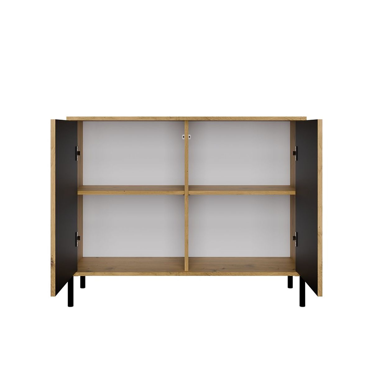 HAUPTMERKMALE DES MÖBELS:Die Kommode KAMARO 2D SLIM EICHE ARTISAN passt hervorragend zu anderen Möbeln der KAMARO-Kollektion, wie TV-Schränken, Vitrinen oder weiteren Kommoden. Erstellen Sie harmonische Sets, die Ihren Bedürfnissen und Ihrem Lebensstil entsprechen!