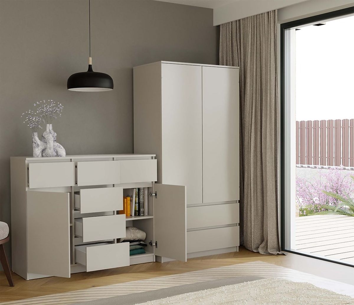 Universelles Design: Der gedämpfte Kaschmir-Ton passt zu den neuesten Interior-Trends und bringt Wärme und Eleganz in den Raum. Perfekt kombinierbar mit hellen Wänden, Naturholz oder Loft-Accessoires. Grifflose Fronten betonen den minimalistischen Charakter und sorgen gleichzeitig für Komfort bei der Nutzung.
