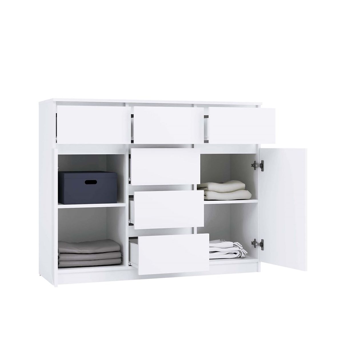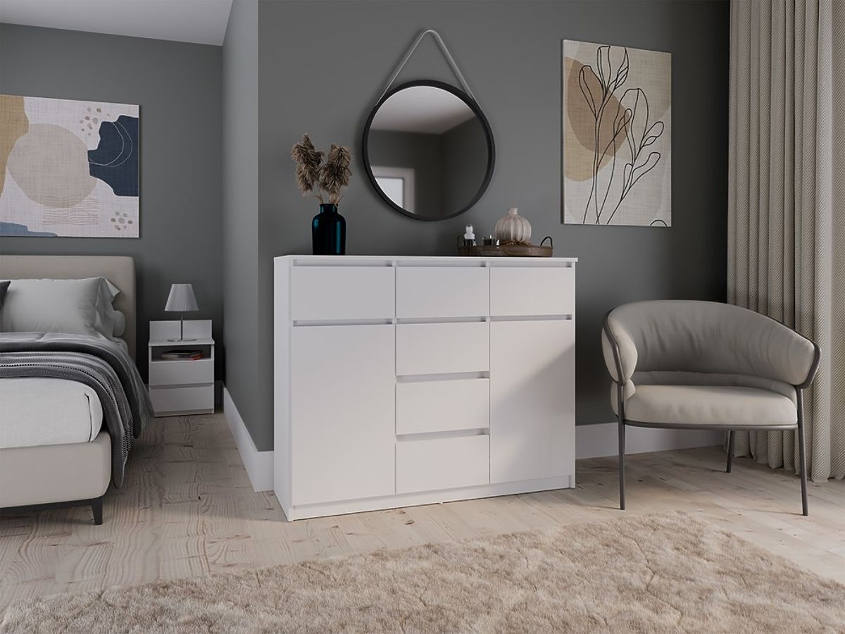 • Universelles Design: Die einfache, elegante Form der Kommode in mattweiß sorgt dafür, dass sie sowohl in moderne als auch klassische Interieurs passt. Grifflose Fronten betonen den minimalistischen Charakter und gewährleisten gleichzeitig eine bequeme Nutzung.