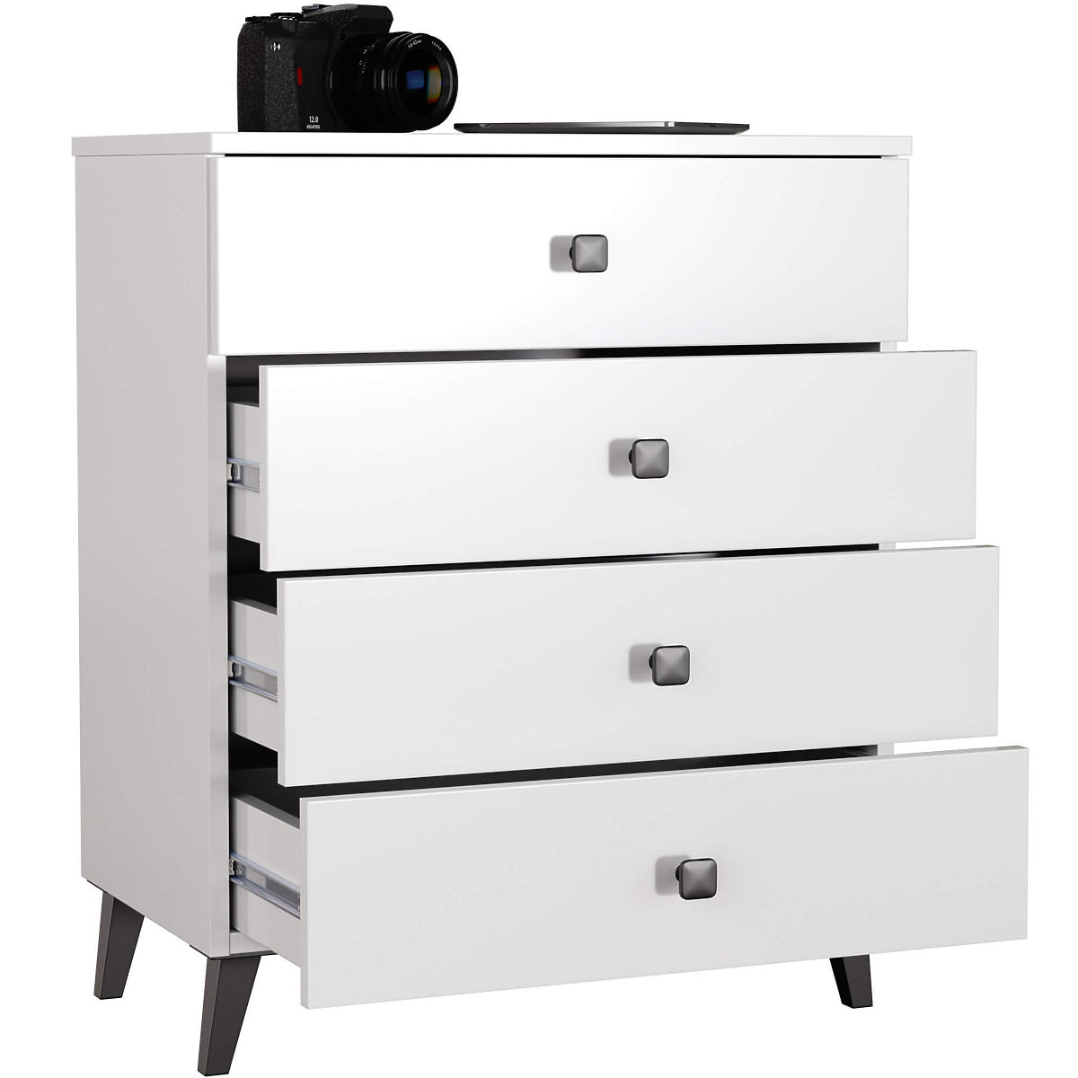 KOMMODE MOBI 4 SCHUBLADEN WEISS SCHWARZ