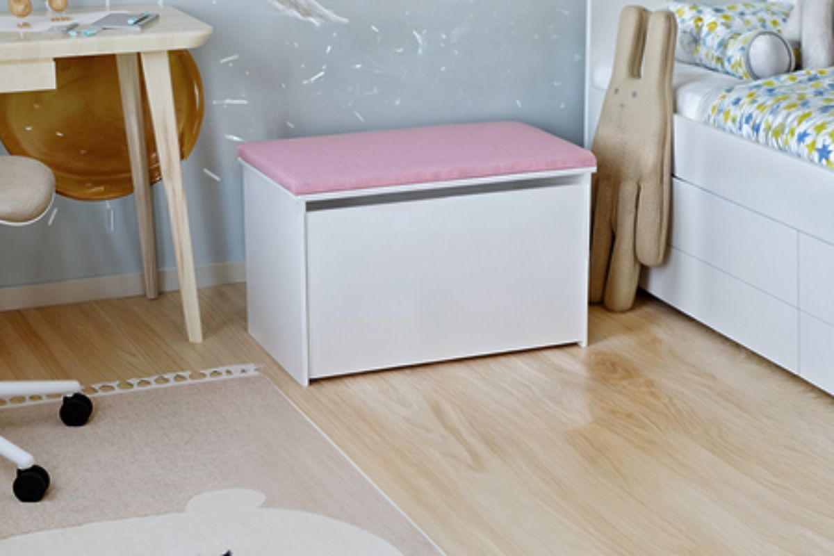 Banaby.de » Kindermöbel / Kinderkommoden und Schränke / Spielzeugtruhen / Spielzeugtruhe Daria mit rosa Sitzkissen