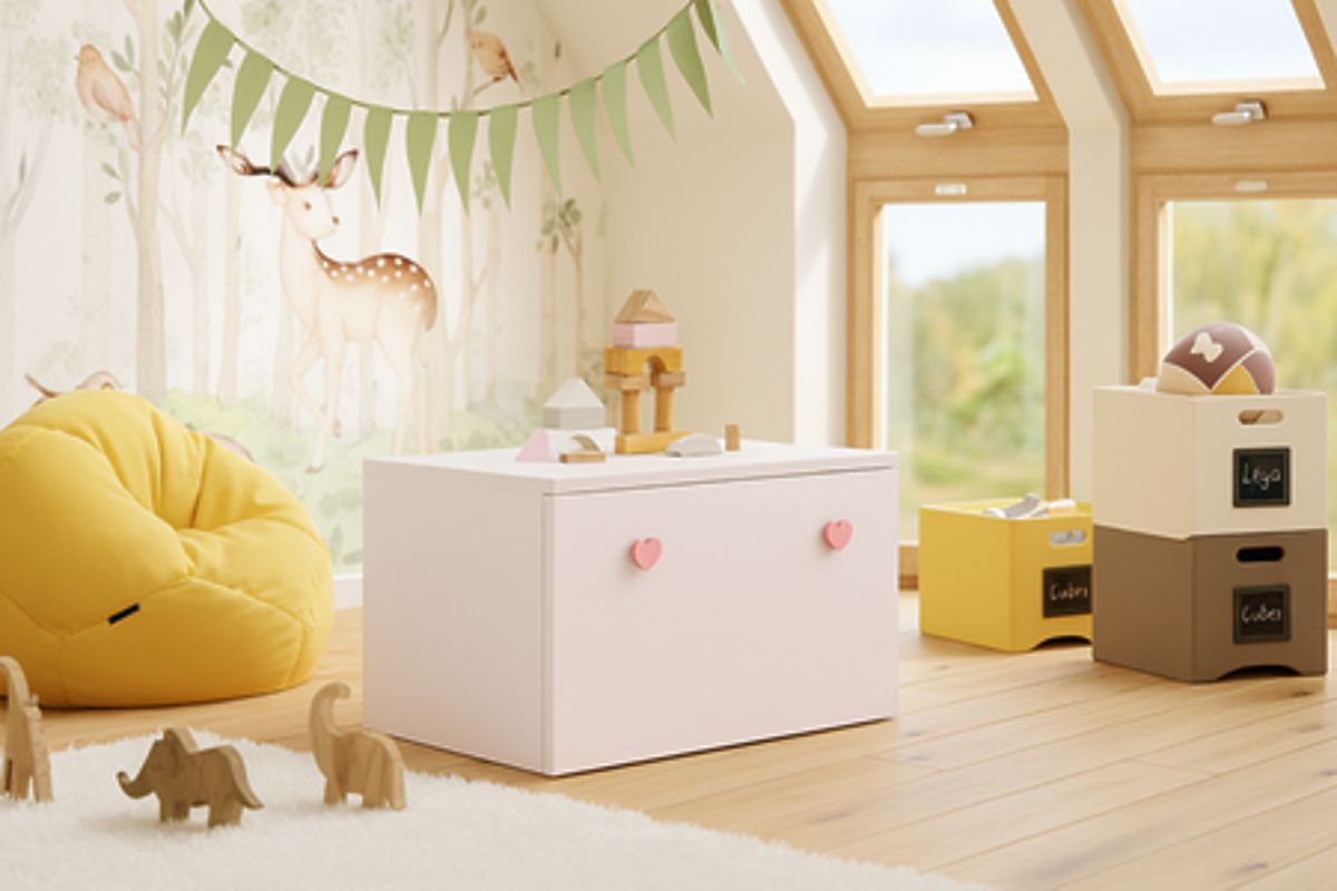 Die Spielzeugtruhe INGA ist eine hervorragende Möglichkeit, den Raum im Kinderzimmer, Schlafzimmer oder Flur zu organisieren. Dank des geräumigen Innenraums ermöglicht sie die bequeme Aufbewahrung von Spielzeug, Decken, Kleidung und anderen Kleinigkeiten, was hilft, Ordnung in jedem Interieur zu halten. Ihre funktionale Konstruktion sorgt für schnellen und bequemen Zugriff auf die gelagerten Gegenstände.