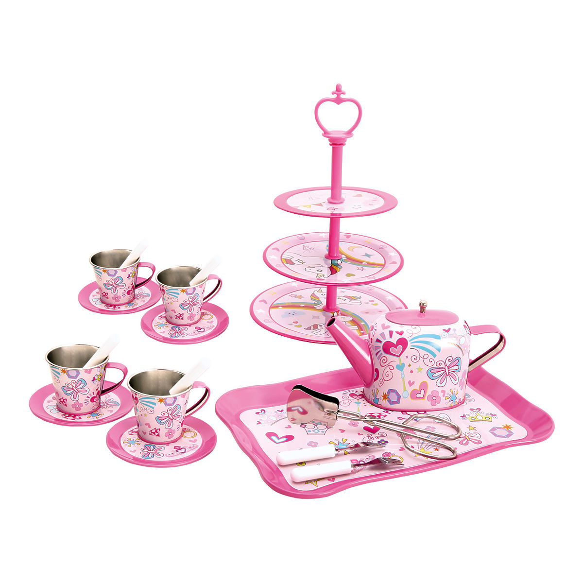 Es ist Zeit für einen zauberhaften Teekränzchen für Eltern, Puppen und Kuschelfreunde! Mit dem umfangreichen Teeservice können Kinder ihre Fantasie sowie soziale und kommunikative Fähigkeiten entwickeln. Das Set ist detailliert dekoriert, aus robustem, leichtem Metall und unbedenklichem Kunststoff gefertigt. Hauptmerkmale: Service für 4 Personen, insgesamt 35 Teile, robustes Design