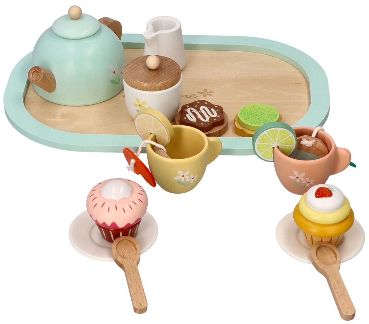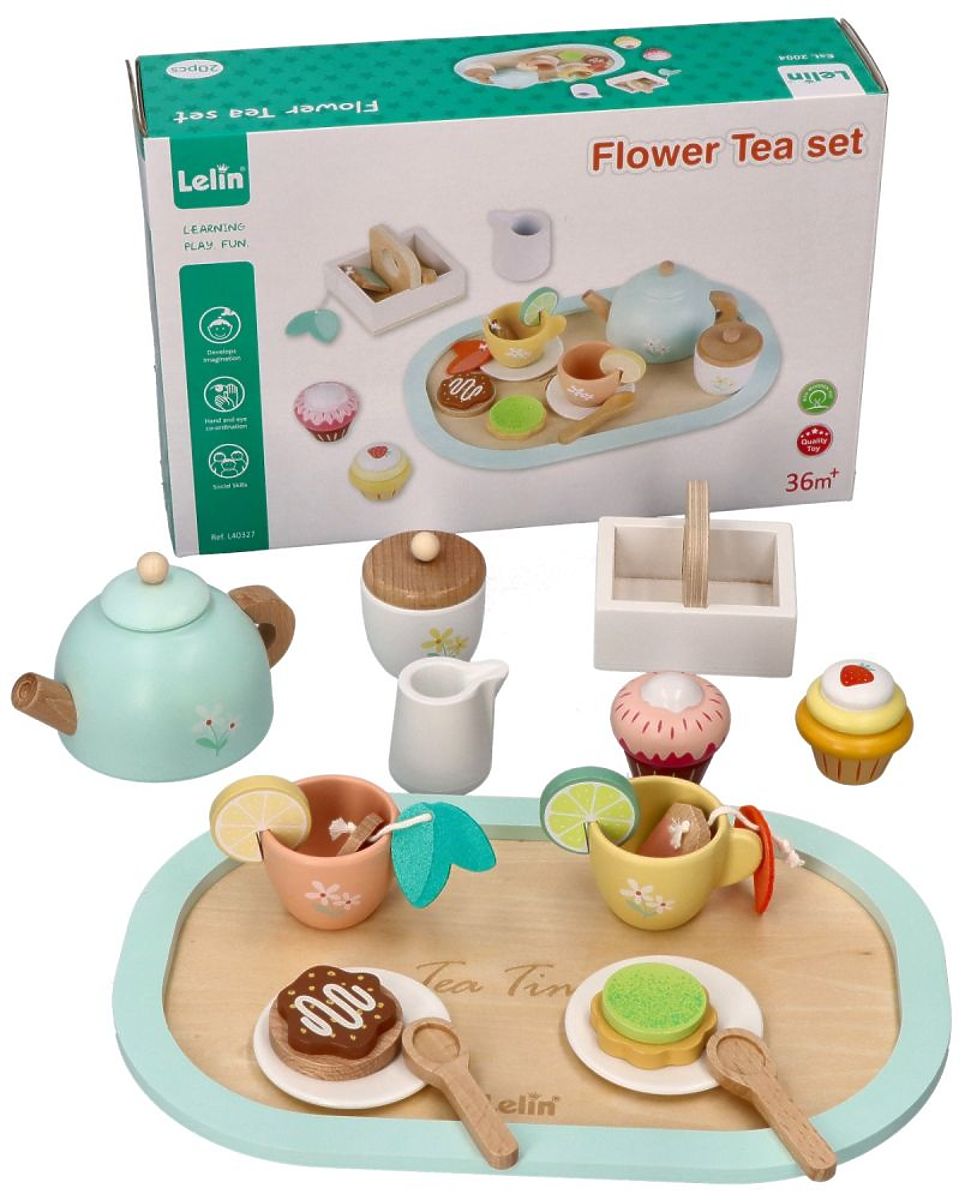 Tauchen Sie ein in die Welt der Teepartys mit diesem wunderschönen Holzset, verziert mit zarten Blüten. Pastellfarben und feine Blumenmuster entführen jedes Kind in eine magische Fantasiewelt, in der das Spiel zur echten Kunst der Gastfreundschaft wird. Alles ist aus natürlichem Holz gefertigt und sicher für kleine Hände. Die Blumenmotive verleihen Charme und machen das Set nicht nur zum Spielen, sondern auch als Dekoration für das Kinderzimmer geeignet.