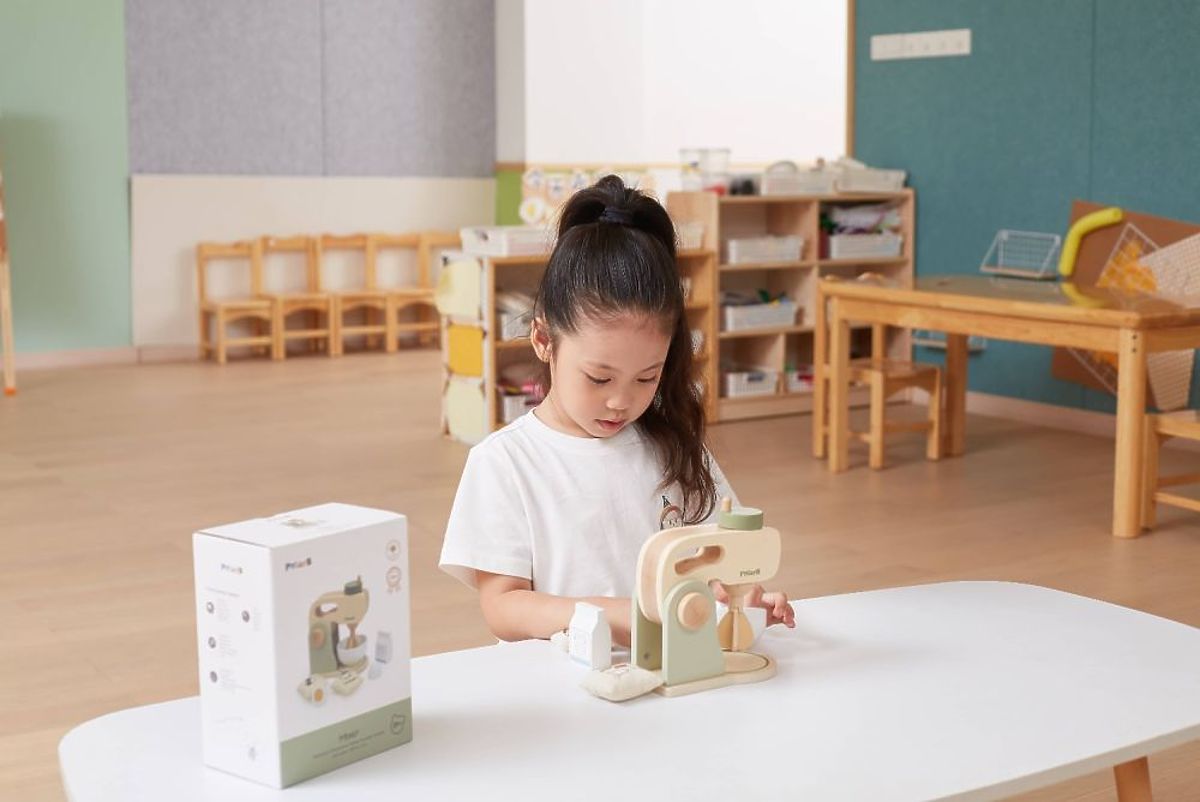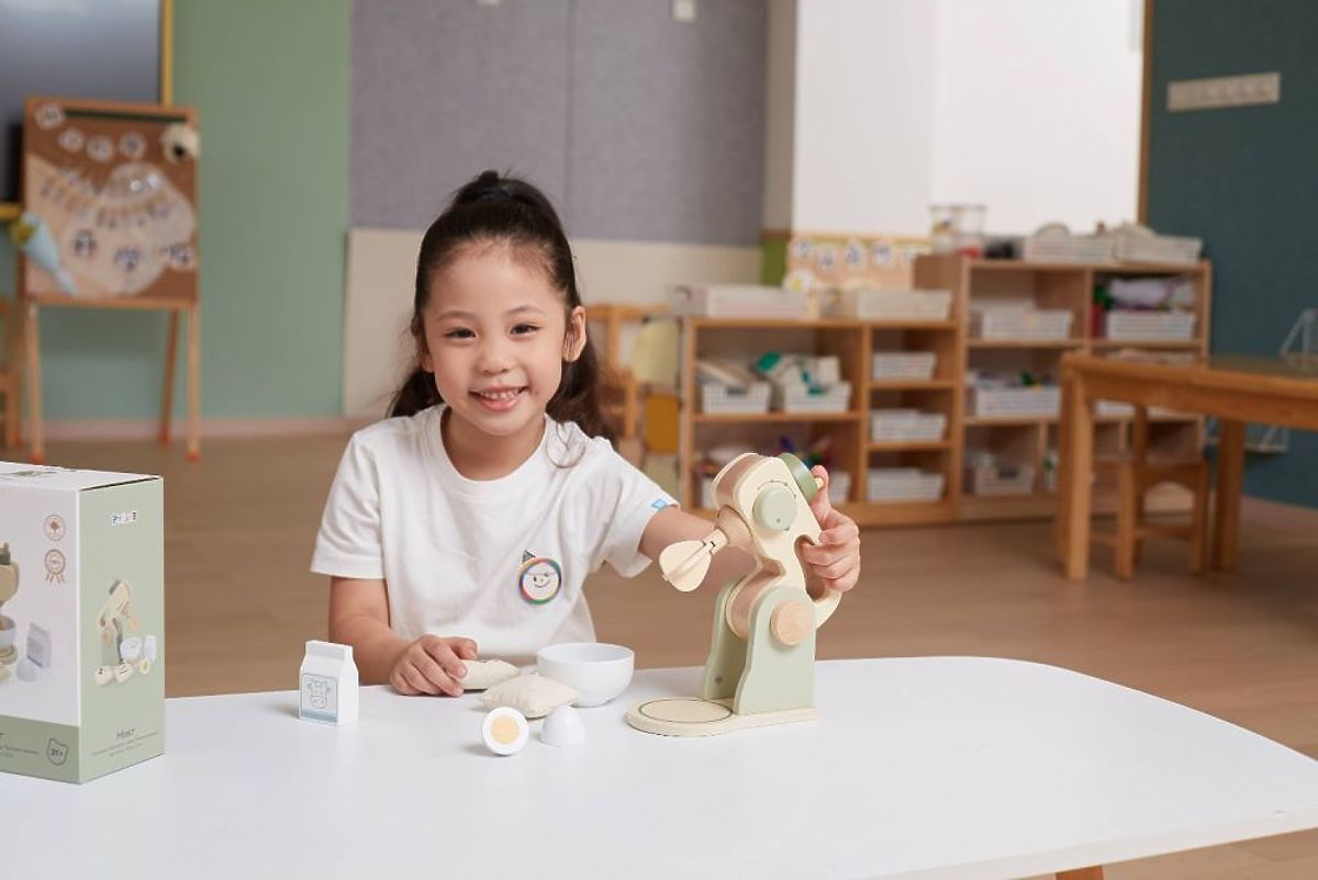 Das Set enthält nicht nur den Mixer, sondern auch die wichtigsten Zutaten zum Backen: eine Holzpackung Milch, zwei Mehlsäcke und ein Ei, das in zwei Hälften geteilt werden kann – dies ist die ideale Gelegenheit, um Ihrem Kind die Grundlagen des Backens zu erklären und gemeinsam während des Spiels Lieblingsrezepte zu kreieren.