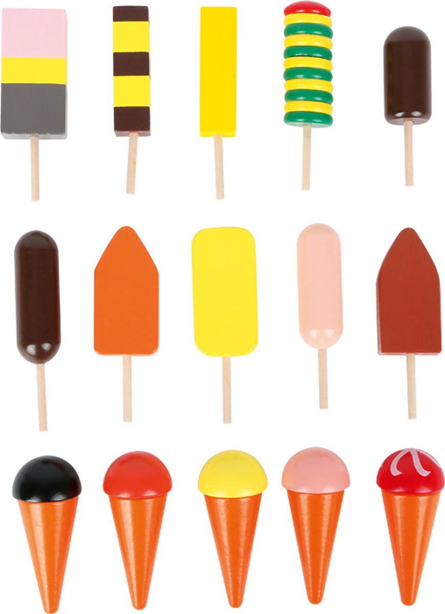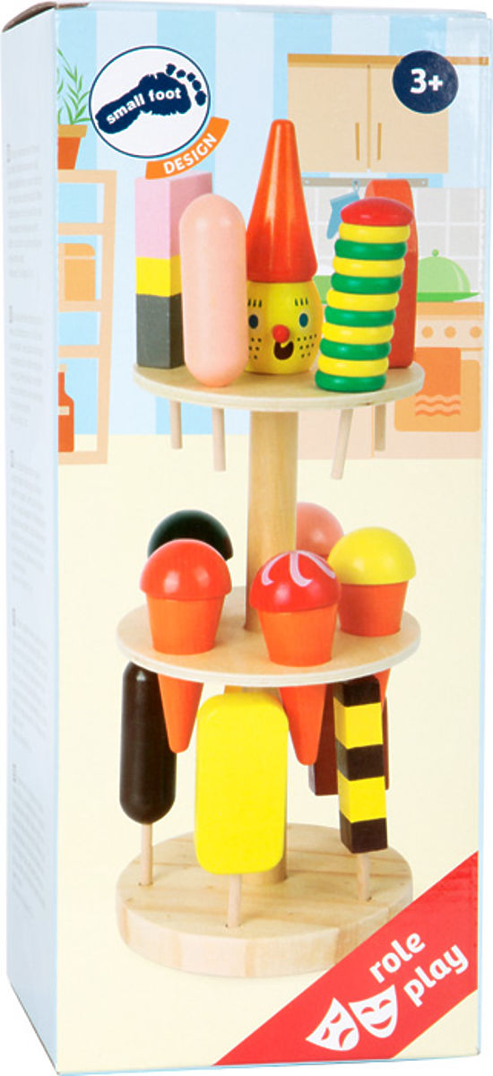 Beschädigte Verpackung. Neue Ware ohne Mängel. Kinder, kommt in die Eisdiele. Dieser dreistöckige Ständer hat alles, worauf ihr Lust habt. Eis am Stiel oder in der Waffel (8-10 cm) kann in die vorbereiteten Öffnungen arrangiert werden. Dieser Eiscremeständer bietet insgesamt 15 verschiedene und farbenfroh dekorierte Eissorten. Er ist aus farbig lasiertem Massivholz und Sperrholz gefertigt. Einfach ein "cooles" Accessoire für Kinderküchen oder Lebensmittelgeschäfte. Hauptmerkmale: aus Holz gefertigt, enthält 16 Teile, fördert Rollenspiele in Küchen und Geschäften.