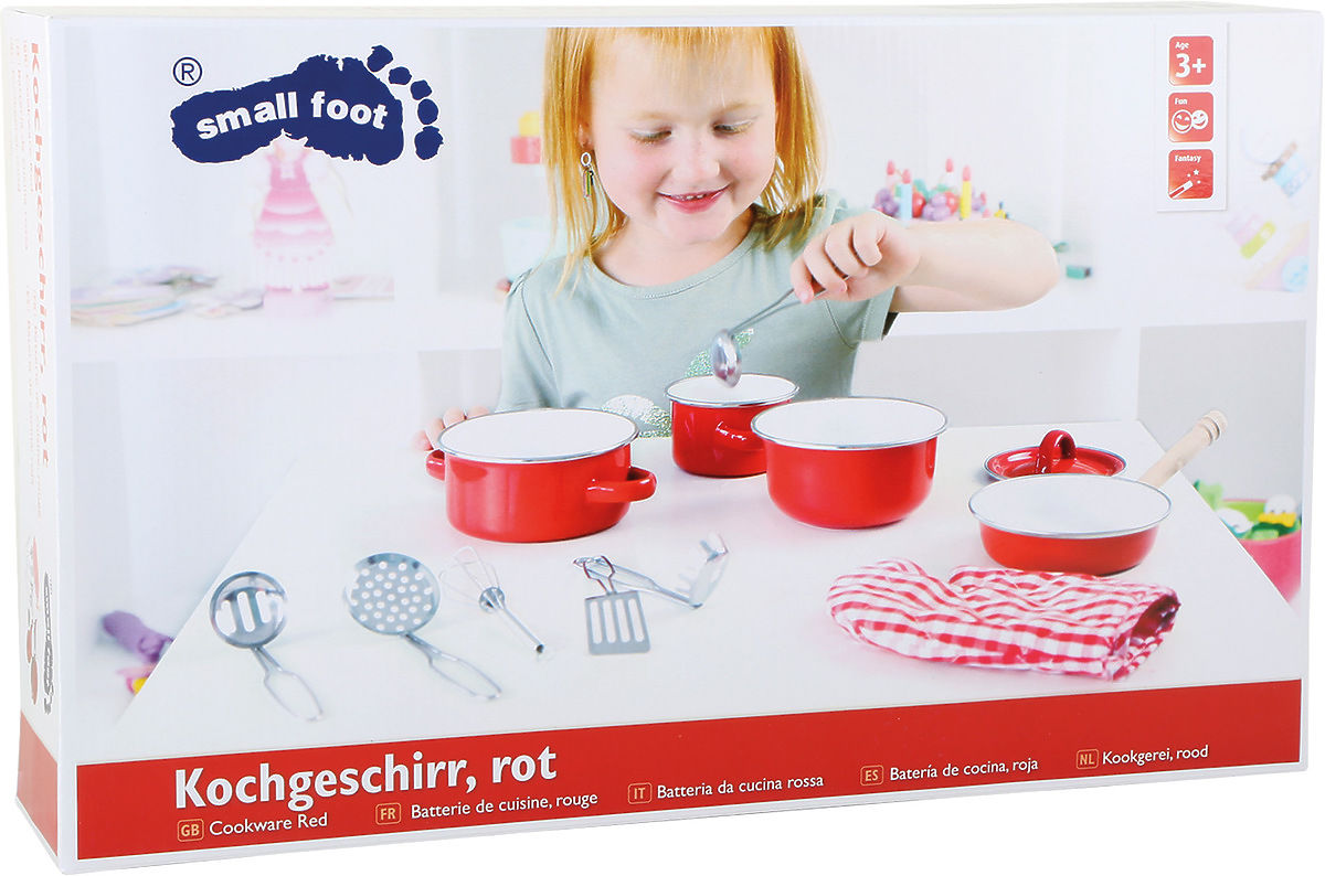 Zauberhafte rote Töpfe, Küchenutensilien aus Metall und ein Handschuh sind tolle Ergänzungen für jede Kinderküche. Das Set beinhaltet: 1 Topflappen, 1 große .. mehr