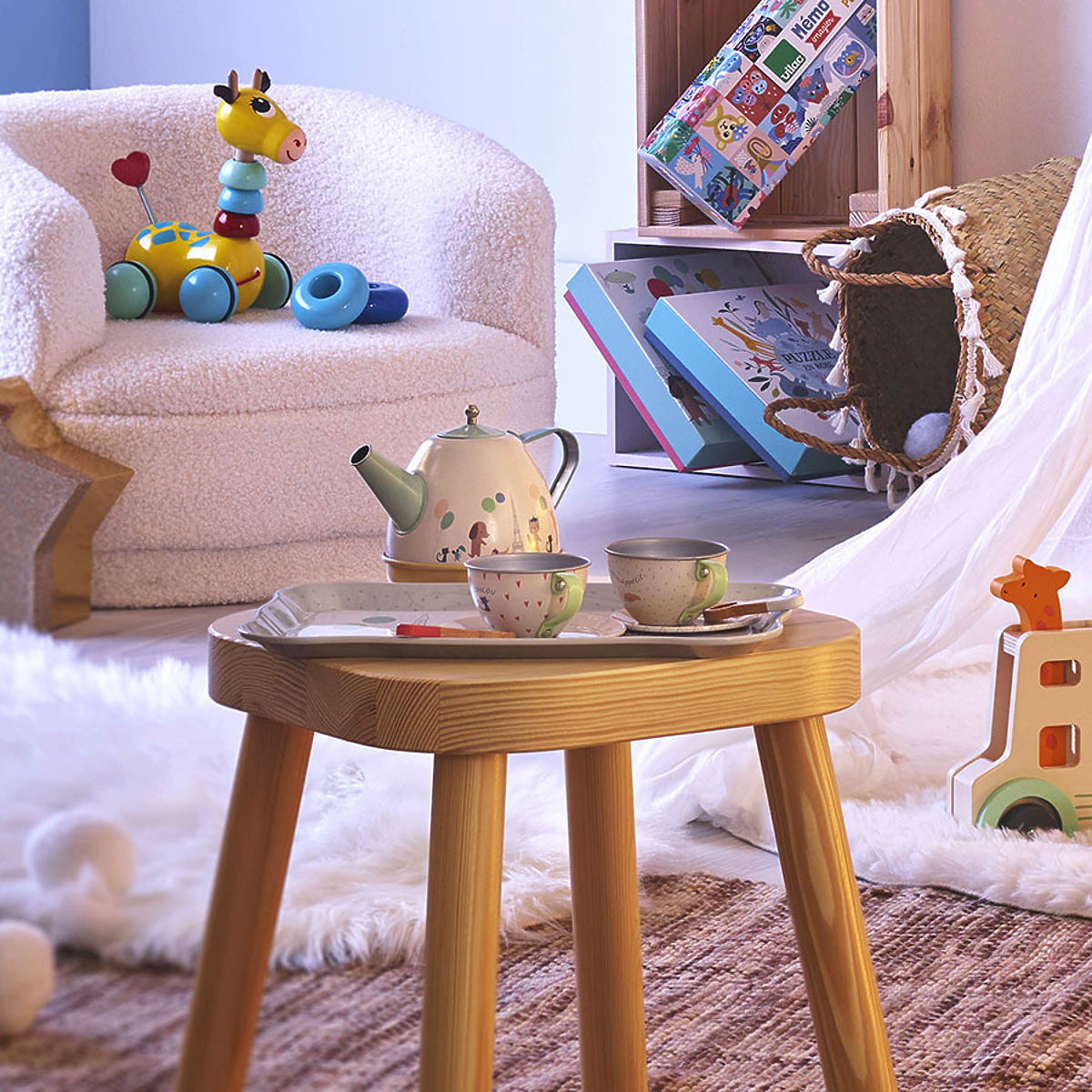 Mit dem magischen Teeservice entwickeln Kinder ihre Fantasie, lernen die Regeln des Servierens und das gesellschaftliche Verhalten. Die Kanne ist mit einem aufziehbaren Spielwerk ausgestattet, das beim Neigen eine sanfte Geburtstagsmelodie „Viel Glück und Gesundheit“ abspielt. Das 14-teilige Set wurde von Sarah Betz mit sanften Farben illustriert, die die Stadt Paris evozieren. Es ist aus leichtem und sehr widerstandsfähigem Metall gefertigt. Eine großartige Möglichkeit, kreatives und fantasievolles Spielen zu fördern. Dank des praktischen Koffers ist es auch ein großartiger Begleiter auf Reisen. Dieses Spielzeug benötigt keine Batterien, die Musik wird von einer mechanischen Spieluhr gespielt, die mit einem unter der Kanne befestigten Schlüssel aufgezogen wird. Hauptmerkmale: Tablett, Kanne und 4 Tassen mit Untertassen spielt die Melodie „Viel Glück und Gesundheit“ ab praktischer Koffer für einfaches Tragen langlebige, leichte Metallkonstruktion Design von Sarah Betz