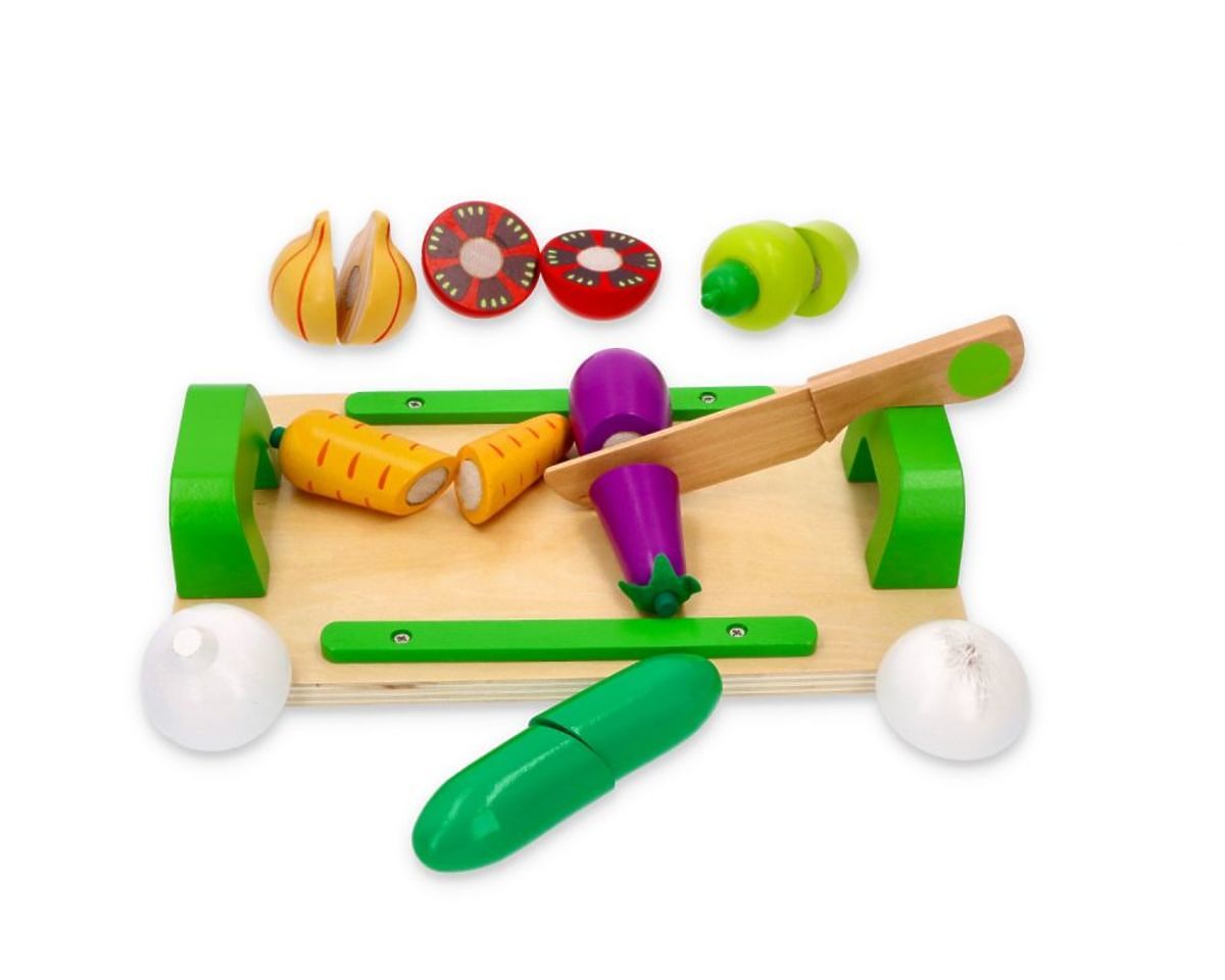 - S einzelnen Teile sind mit Klettverschluss befestigt, so dass die Kinder sicher versuchen, Gemüse zu schneiden