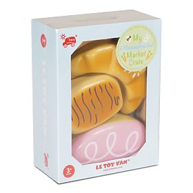 Kaufen Sie lokal ein! Spielzeug-Lebensmittelkiste aus Holz, enthält Gebäck: Brezel, süßes Baguette mit Belag, Croissant, Schokoladenbrötchen und Frühlingsrolle. Die perfekte Ergänzung für Kindermarktstände und Kinderküchen. Passt zu anderen Le Toy Van-Boxen, in denen Sie beispielsweise Fisch, Gemüse, Obst, Fleisch oder Eier finden. Hauptmerkmale: Gebäckkoffer aus Holz. Kompatibel mit anderen Honeybake-Produkten – Küchengeräte, Verkaufsstände. Spielzeug unterstützt Kreativität, Fantasie, hilft bei der Entwicklung von Sprache und sozialen Fähigkeiten. Hergestellt aus langlebigem und nachhaltigem Kautschukholz – langanhaltender Spaß und Pflege für unseren Planeten. Bemalt mit ungiftigen Farben, getestet nach strengsten Standards Honeybake-Kollektion Die Spielzeuge dieser Kollektion eignen sich zum Entdecken und helfen Kindern, Fantasie, soziale und verbale Fähigkeiten sowie kognitive Funktionen zu entwickeln. Das traditionelle Design mit modernen Details wird Kindern sicherlich Spaß machen. Honeybake ist die Le Toy Van-Kollektion, die die meisten Auszeichnungen für Design, Qualität, Sicherheit sowie Lern- und Spielwert gewonnen hat.