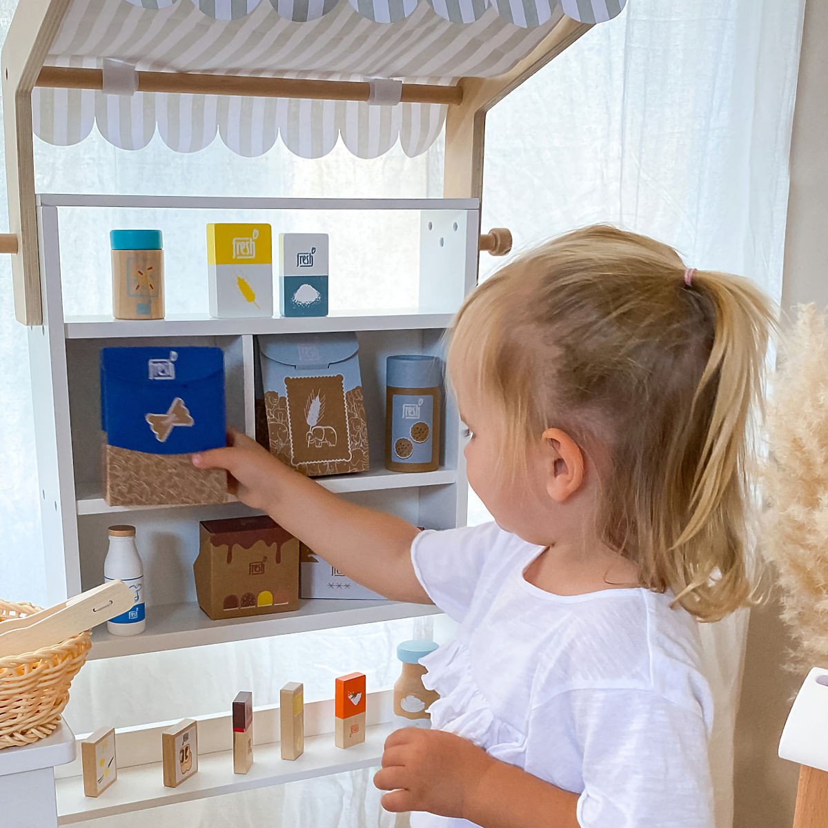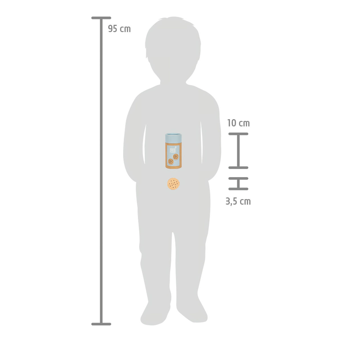 Für kleine Naschkatzen! Diese 5 robusten Sandwich-Kekse sind aus Holz gefertigt und bereichern jeden Kinderverkaufsstand oder jede Spielküche. Sie sind in einer stabilen Verpackung aus Naturkarton verpackt. Das natürliche und realistische Aussehen macht diese Kekse zu den Favoriten der Kinder. Das Spielzeug bietet langanhaltenden Spaß, besonders in Kombination mit anderen Produkten aus der „Fresh“-Reihe. Hauptmerkmale: fünf robuste Kekse, ideal als Ergänzung für Kinderverkaufsstände und Spielküchen, die Kekse haben eine Schokoladenfüllung und sind realistisch, verpackt in einem zylindrischen Behälter mit abnehmbarem Deckel, die Bilder sind auch für die Kleinsten leicht verständlich, kompatibel mit anderen Produkten aus der „Fresh“-Reihe.