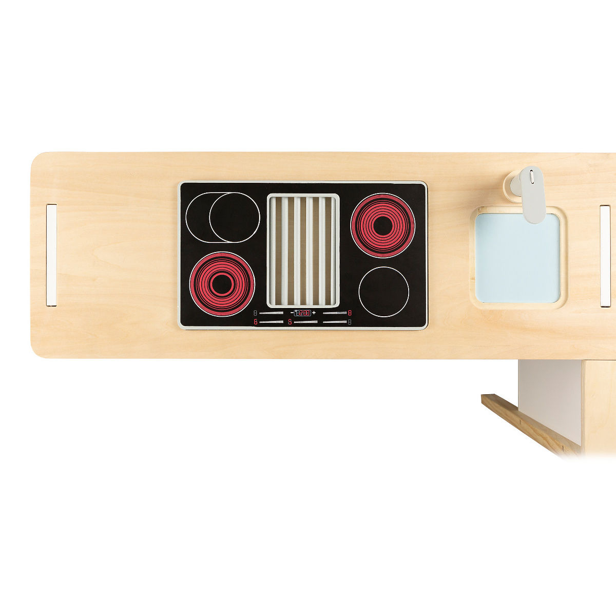 Abmessungen: 106 x 40 x 106 cm Höhe der Arbeitsfläche: 60 cm Alter: 3+ Material: Holz, Stoff, Kunststoff