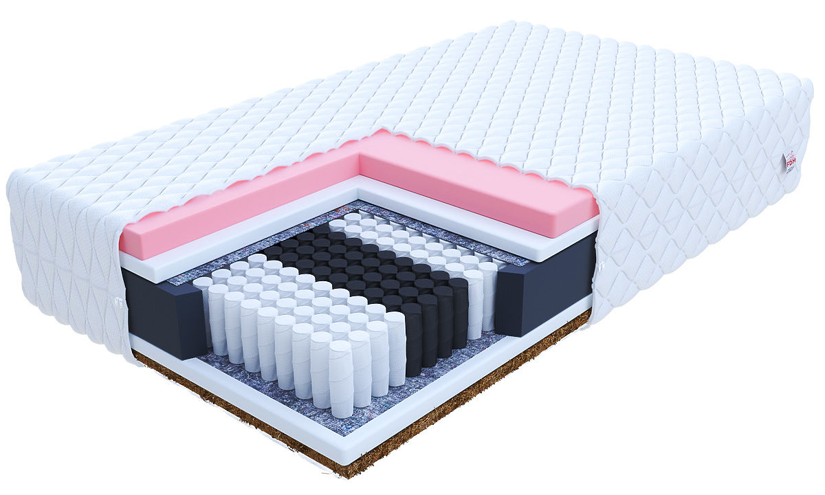Um zusätzliche Atmungsaktivität zu gewährleisten, wurde eine Kokoseinlage verwendet, die als Naturmaterial die gesamte Konstruktion leicht versteift. Zwischen Federn und Schaumstoff wurde ein Trennmaterial eingelegt. Dabei handelt es sich um einen Naturfilz, der die Lebensdauer der Matratze deutlich verlängern und ihre Struktur stärken kann.