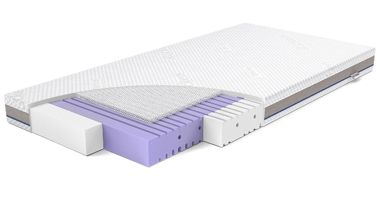 Je schwerer und dichter der Schaum, desto widerstandsfähiger ist er gegen Verformung. In Kindermatratzen ist der T 18-Schaum (18 kg/m3 – sehr geringe Dichte und hohes Verformungsrisiko) beliebt. In der Aero-Matratze verwenden wir VitaRest® HR 35/32-Schaum (mehr Schaum im Schaum). Er sorgt für einen schlaf ohne unerwünschte Dellen, die die sich entwickelnde Wirbelsäule des Kindes negativ beeinflussen können. Darüber hinaus sind hochelastische Schäume widerstandsfähiger gegen Verformungen als gewöhnliche PUR-Schäume, selbst bei gleicher Masse. Die Dicke des Matratzenkerns beträgt 10 cm.