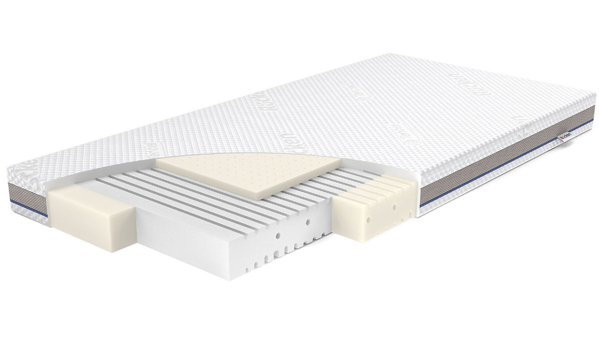 Latexschaum – strapazierfähig und komfortabelLatex ist ein sehr strapazierfähiges und elastisches Material, das sich hervorragend an die Körperform anpasst. Es hat antibakterielle und antimykotische Eigenschaften. Latex lässt sich leicht aufrollen und in den Gefrierschrank legen, was die Entwicklung pathogener Bakterien verhindert. Latexschaum ist ein sehr strapazierfähiges Material und verformt sich auch bei sehr langem und intensivem Gebrauch nicht (20 % natürlicher Latex und 80 % synthetischer Latex).