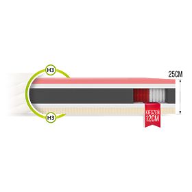 Auf einer Seite der Matratze befindet sich eine Schicht aus Latex, die sehr elastisch ist, was den Komfort verbessert, und dank der perforierten Struktur ist sie hervorragend atmungsaktiv. Eine weitere Schicht besteht aus PU-Schaum T25, dessen Vorteile hohe Verformungsbeständigkeit, Elastizität, Atmungsaktivität sind und den Körper während der Ruhe stabilisiert. Zwischen den Federn und dem PU-Schaum T25 wurde ein Trennmaterial eingefügt. Es handelt sich um natürlichen Filz, der die Lebensdauer der Matratze erheblich verlängern und ihre Konstruktion stärken kann. Den Schlafkomfort erhöht unglaublich die thermoplastische VISCO-Schaum, die sich auf der anderen Seite der Matratze befindet. Unter dem Einfluss von Körpertemperatur und Gewicht passt sie sich perfekt den natürlichen Körperkurven an, was eine richtige Unterstützung des gesamten Körpers gewährleistet. VISCO und die Federn werden wiederum durch eine Schicht aus widerstandsfähigem PU-Schaum T25 und natürlichem Trennmaterial getrennt.