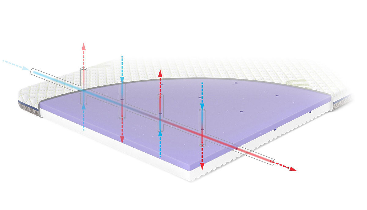 Das Bezugnetz und die vertikalen und horizontalen Kanäle sind vollständig integriert - dadurch entsteht ein erweitertes Netzwerk und die Matratze atmet.