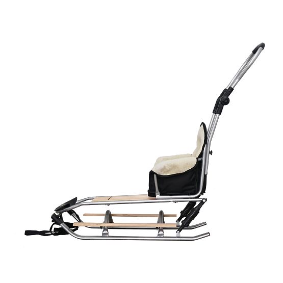 Dank des Sitzes aus Buchenholzplatten mit Stoßdämpfern ist die Schlittenfahrt sanft und komfortabel. Die Stoßdämpfer können von weich bis hart eingestellt werden. Die Führung hat eine einstellbare Höhe, die Rückenlehne kann demontiert und abgeschraubt werden, sodass Sie den Schlitten nach Ihren Vorlieben anpassen können.