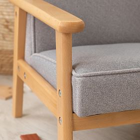 Der grau-blaue Retro-Kindersessel vereint Komfort, Stil und Langlebigkeit. Die solide Holzkonstruktion sorgt für Stabilität und Sicherheit, während die Polsterung für bequemes Sitzen sorgt. Dieser Sessel hält jahrelanger regelmäßiger Nutzung stand und ist daher eine ideale Wahl für Kinder- oder Wohnzimmer.