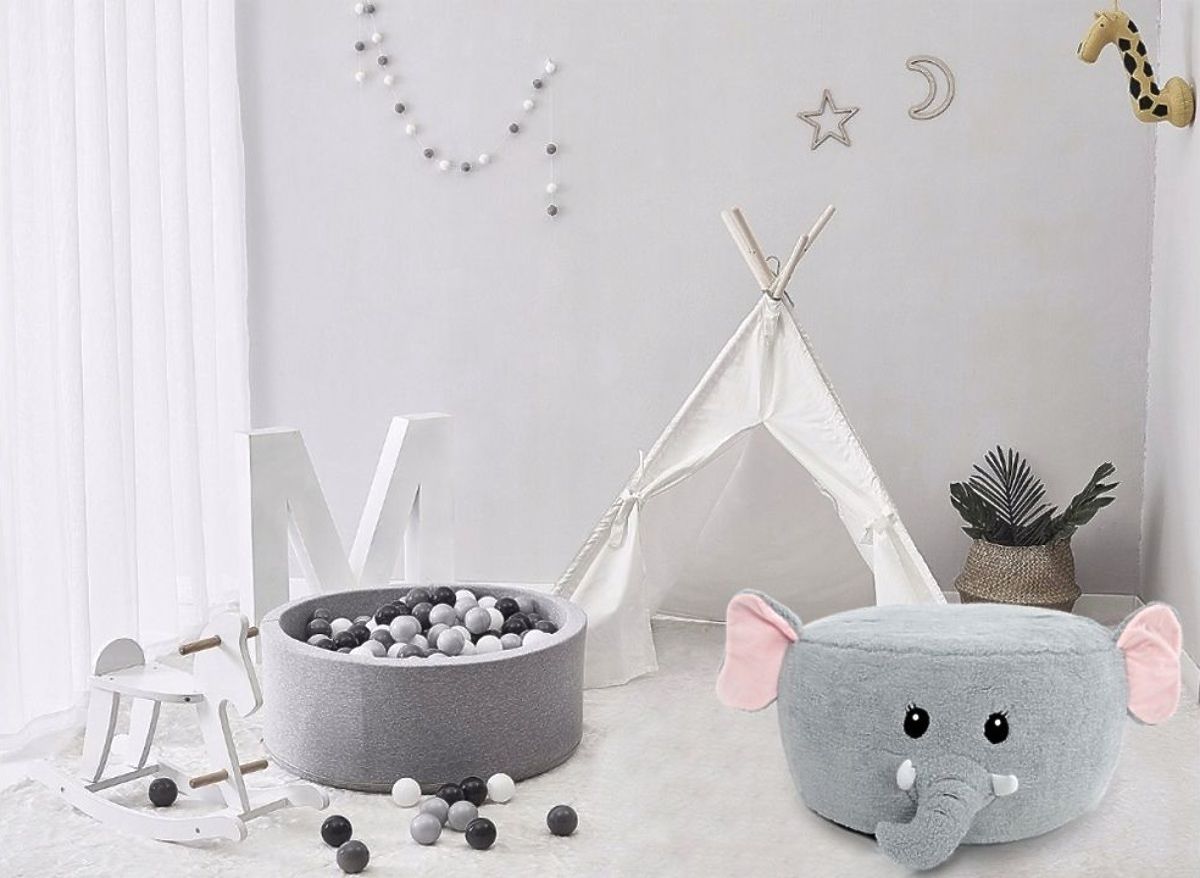 Der Plüschhocker Elefant ist ein praktisches und dekoratives Element für das Kinderzimmer.